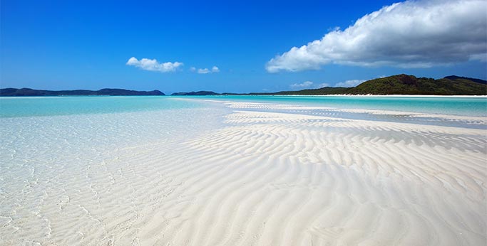Australská pláž Whitehaven Beach na ostrově Whitsunday vás svojí krásou srazí na kolena. Doslova! Ale padnete do toho nejbělostnějšího písku a budete zírat na tu neskutečnou scenérii kolem sebe. Tamní písek má dokonale bílou barvu díky tomu, že obsahuje 98% oxidu křemičitého. Určitě si proto přibalte kvalitní sluneční brýle - tento písek totiž odráží slunce stejně intenzivně jako sníh. Bělostný pás rozděluje dva obzory - zelený a modrý. Svěží tropická zeleň míří do vnitrozemí a končí zvedajícími se horami. Na druhé straně vás uchvátí průzračné moře zbarvené snad všemi odstíny modré. Vstup do vody je pozvolný, takže je ideální i pro děti. Whitehaven Beach náleží k pásmu Velkého bariérového útesu, proto si i tam nasaďte potápěčské brýle, šnorchl a šup do vody! Bohatý podmořský život se vám hned obtočí kolem šnorchlu.