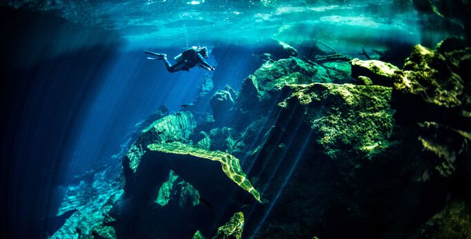 Mexiko je destinací, která nabízí unikátní systém sladkovodních jeskyní nazývaných „cenoty“. Ty jsou pro svou krápníkovou výzdobu a téměř nekonečnou viditelnost hlavním cílem potápěčů, kteří sem zavítají. Zkušený jeskyňář si zde přijde na své, stejně jako rekreační potápěč. Málokdo ví, že zde naši potápěči zanechali nesmazatelnou stopu. Český speleopotápěčský tým zde propojil nejdelší zpamovaný zatopený jeskynní systém na světě dlouhý 62 km! Nesmíme ale zapomenout ani na slané vody Mexika. Korálový útes podél pobřeží Yuakatánského poloostrova je druhým nejdelším bariérovým útesem na světě! Jedinou kaňkou na zážitku mohou být mírně poničená místa tam, kde úřadují v této lokalitě četné hurikány.