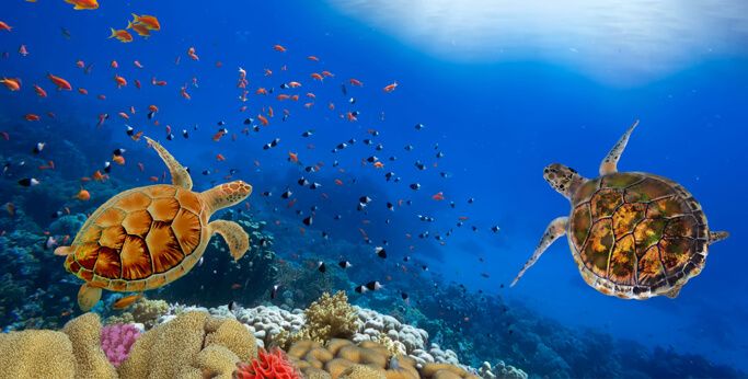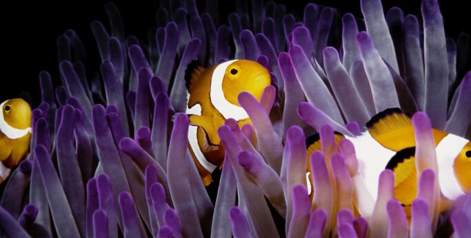 Modrozelený nádech podmořského světa tu a tam naruší barevné rybky všech možných velikostí a tvarů. Zpoza hedvábné sasanky vykukuje nervózní Nemo a kousek opodál potkáváme nehybně ležící svítivě modrou hvězdici. Má nádhernou strukturu a s podivnou ladností otylé baletky lehce čeří mořské dno.